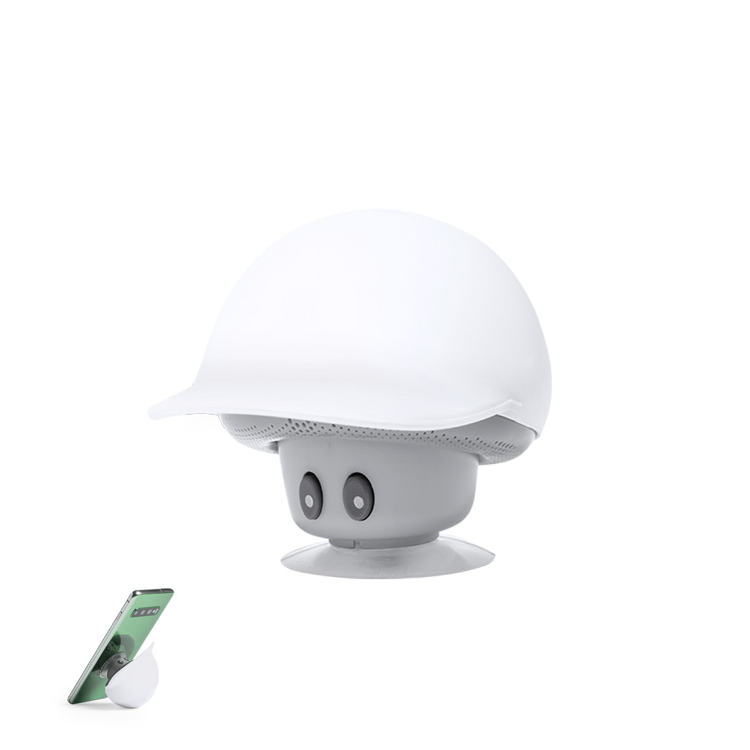 Altavoz de original diseño seta con gorra y función soporte para móvil. Conectividad Bluetooth 5.0, con 3W de potencia y función manos libres. Cuerpo con suave acabado de tacto goma y ventosa de fijación para función soporte. Cable Micro USB incluido y presentado en atractiva caja de diseño kraft. Disponible manual de instrucciones en español e inglés. Conexión Bluetooth. Potencia Sonido 3W. Batería 200 mAh