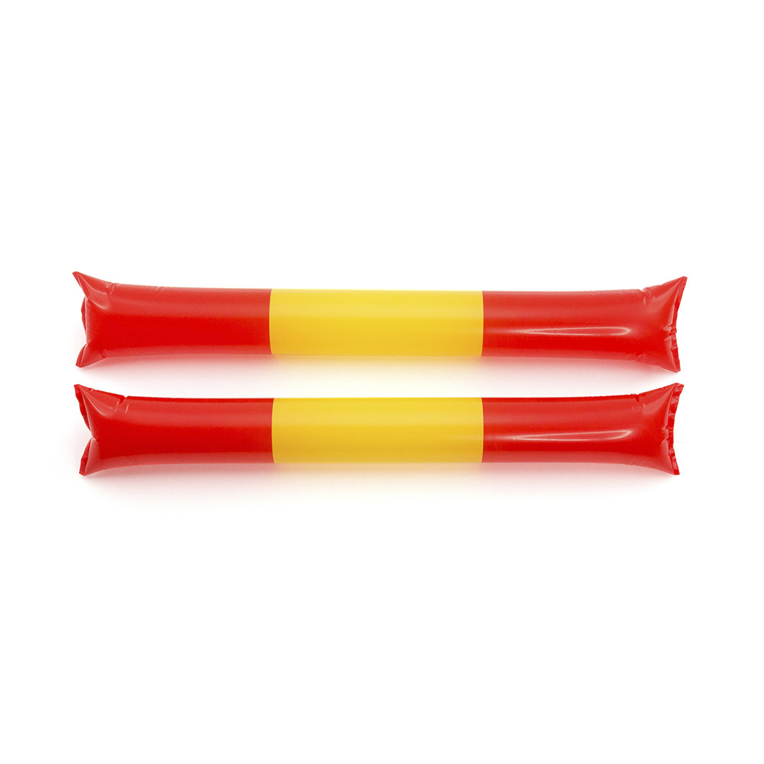 Par de bastom sticks/aplaudidores en resistente y ruidoso material LDPE de diseño España. Reutilizables y con válvula de inflado incluida. Reutilizable. Válvula Inflado Incluida