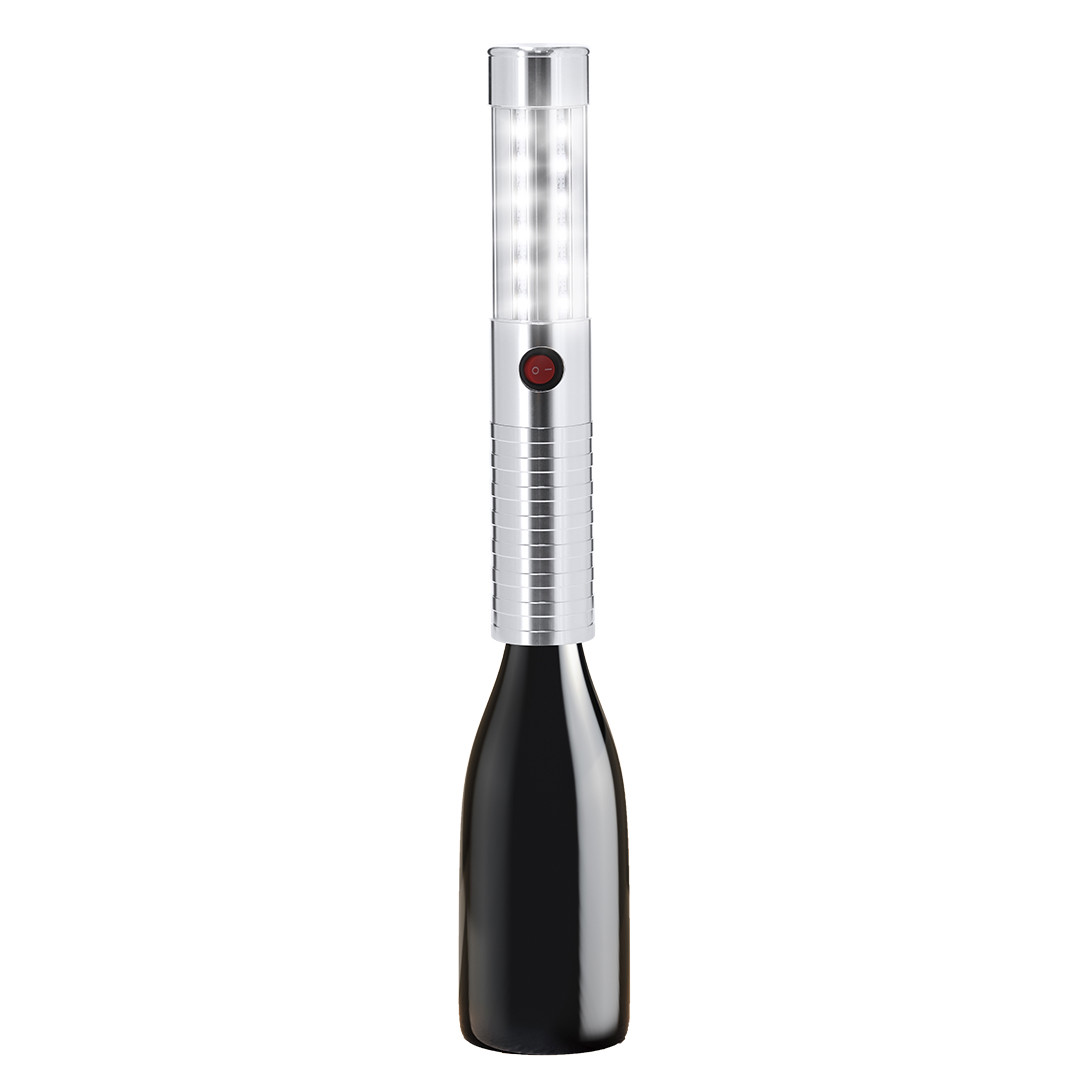 Bastón LED con 3 modos de luz: alta intensidad, media intensidad y luz intermitente. Equipado con 36 LEDs y botón de encendido/apagado. Su tamaño es ideal para acoplar en botellas, destacando en cualquier evento. 36 Ledes. 3 Posiciones de Luz. Batería 1200 mAh