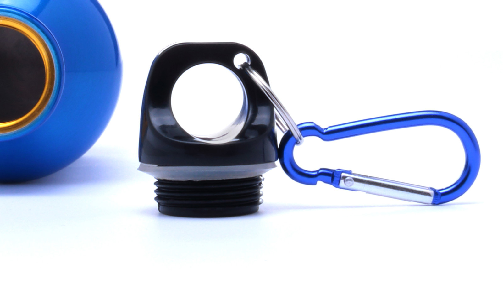 Bidón de aluminio con 800 ml de capacidad. Con tapón de seguridad a rosca y mosquetón metálico de fácil transporte. Original acabado mate y con una variada gama de colores. Presentado individualmente en una caja de diseño. 800 ml