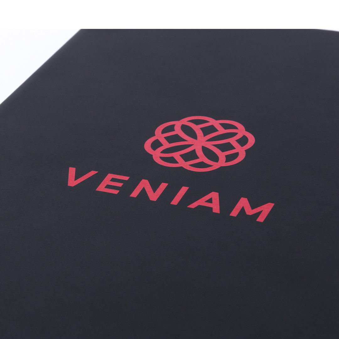 Bloc de notas con tapas de suave tacto acabadas en polipiel. En elegante color negro, con elástico de cierre, marcapáginas y soporte elástico para bolígrafo en vivos colores. Recubrimiento exterior especialmente diseñado para marcaje en láser, con el que conseguirá que su publicidad o marca quede perfectamente grabada en color a juego con el del artículo. Incluye 100 hojas con disposición a una raya. Portada Rígida. 100 Hojas