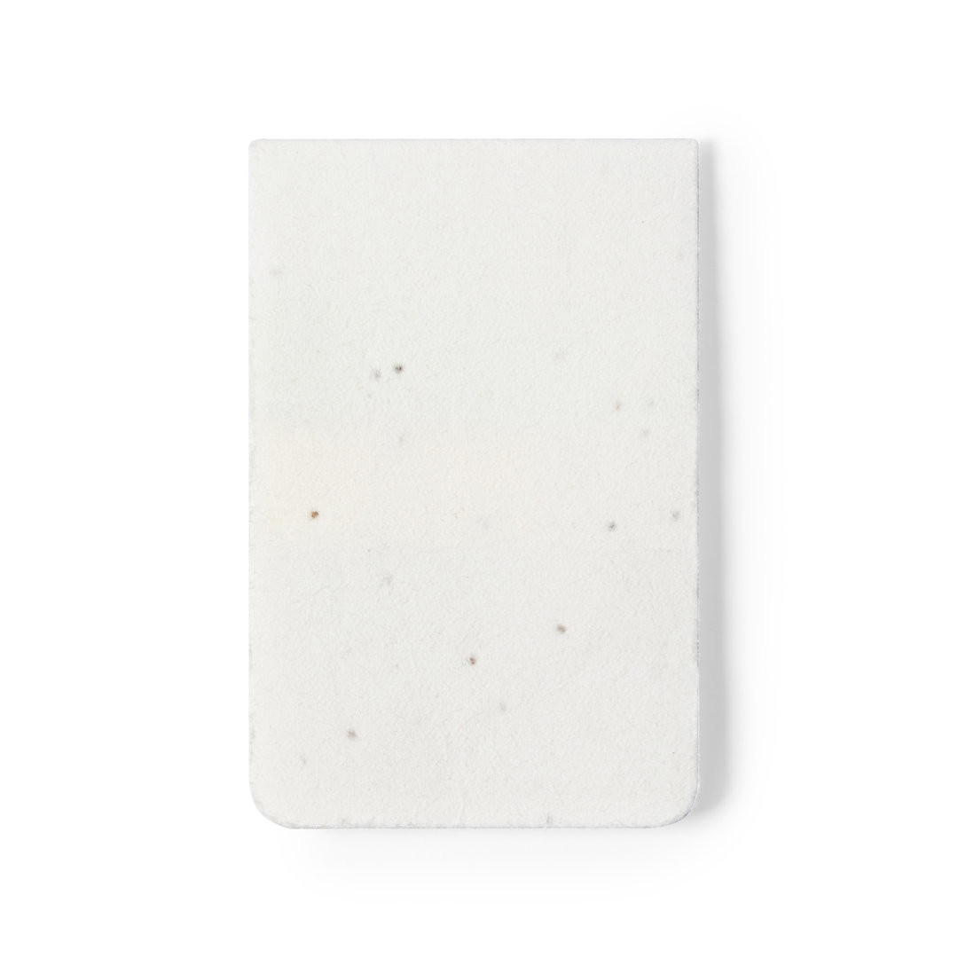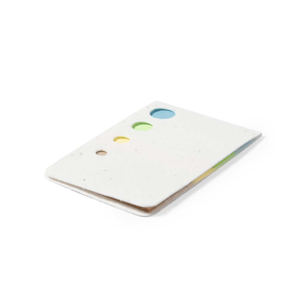 Bloc de notas de línea nature, con cubiertas fabricadas en papel semilla, reciclable y degradable. Incluye semillas de petunia en ambas cubiertas, convirtiéndolo así en papel plantable al final de su vida útil. Interior con 10 notas adhesivas medianas y 30 mininotas adhesivas en varios colores. Flores en colores surtidos, con instrucciones de plantado en la cubierta trasera y presentado en bolsa individual de papel reciclado. 10 Notas Adhesivas 3 x 5 cm. 30 Mininotas adhesivas 1,5 x 5 cm. Semillas de Petunia Incluidas. Flores Colores Surtidos