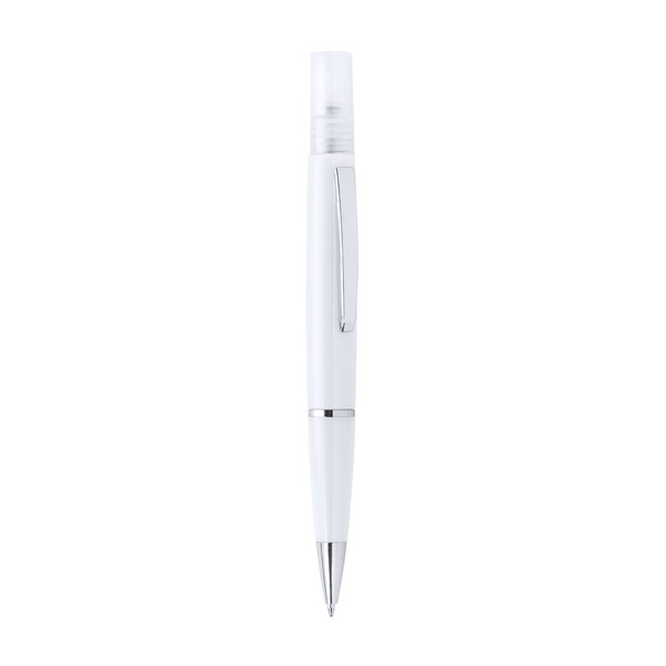 Bolígrafo higienizante con pulverizador recargable integrado y capucha protectora. Acabado en resistente ABS brillante con elegante clip metálico y cómoda empuñadura y escritura en tinta azul. Capacidad del pulverizador 3ml. Líquido no incluido. Disponible en amplia y variada gama de colores. 3 ml. Líquido No Incluido