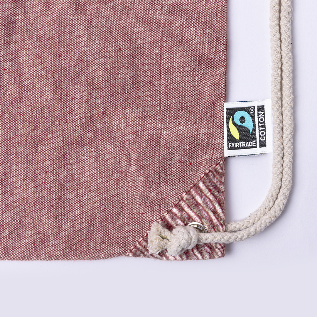 Mochila de cuerdas fabricada en suave poliéster 210D. Con bolsillo frontal de cremallera y salida de auriculares. Cuerdas de autocirre en color gris, a juego con cremallera y esquinas con argollas metálicas y refuerzo de polipiel. En variada gama de colores.