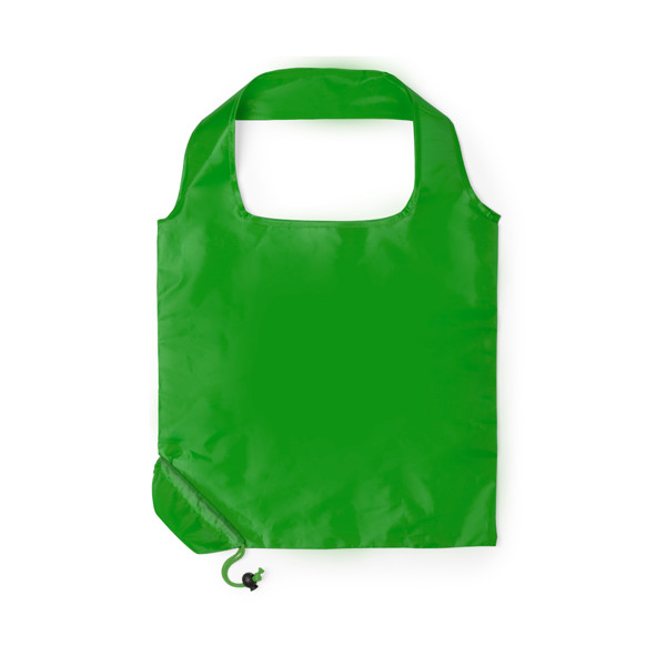 Bolsa plegable en divertidos y variados colores. De suave poliéster 190T, con elástico para plegado y de acabado cosido.