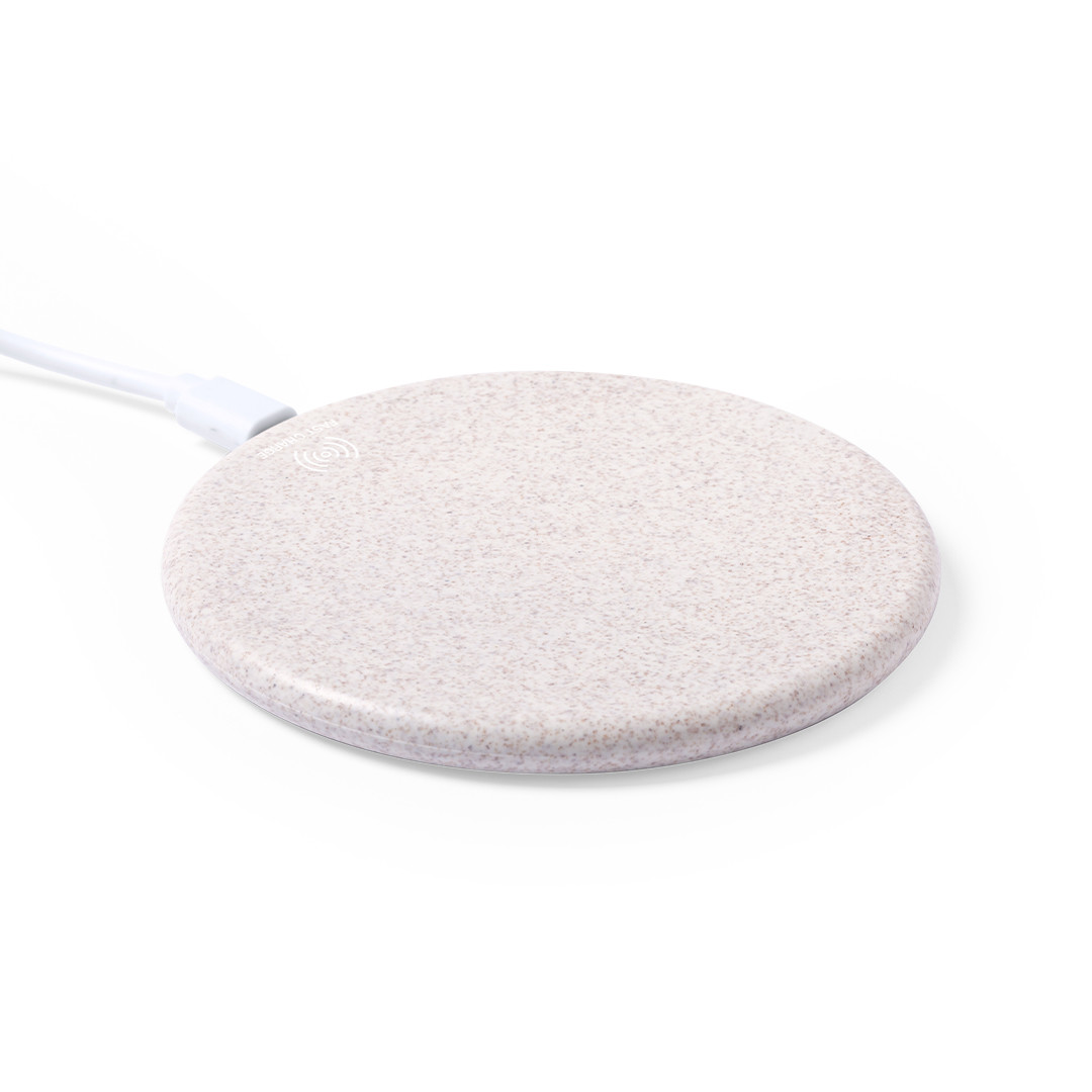 Cargador inalámbrico de diseño circular fabricado en caña de trigo, para así fomentar la utilización de materias primas naturales y reducir las emisiones contaminantes. Con función carga rápida de 10W e indicador led. Cable de carga micro USB incluido y compatible con dispositivos equipados con tecnología de carga inalámbrica. Protección de seguridad para evitar sobrecalentamiento, sobrecarga y cortocircuito. Presentado en atractiva caja de diseño nature. Inalámbrico 10W