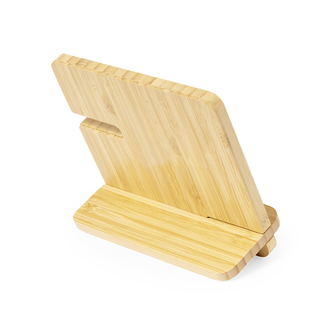 Completo multicargador inalámbrico 15W con soporte para gadgets, fabricado en bambú. Diseñado para la carga simultánea del smartphone, auriculares y smartwatch: una estación de carga todo en uno, versátil y con diferentes soportes. Presentado en caja de diseño kraft. Disponible manual de instrucciones en español e inglés.Materiales como el bambú fomentan la utilización de materias primas naturales, reduciendo las emisiones contaminantes. Proviene de una planta de gran resistencia y versatilidad, con crecimiento y regeneración rápidos, siendo una excelente alternativa al uso de madera tradicional.Fabricado conforme a los estándares RoHS y en cumplimiento con los siguientes requisitos de seguridad:Sistema de protección contra sobrecalentamiento.Sistema de protección contra sobrecarga.Sistema de bloqueo para evitar cortocircuitos. Inalámbrico 15W