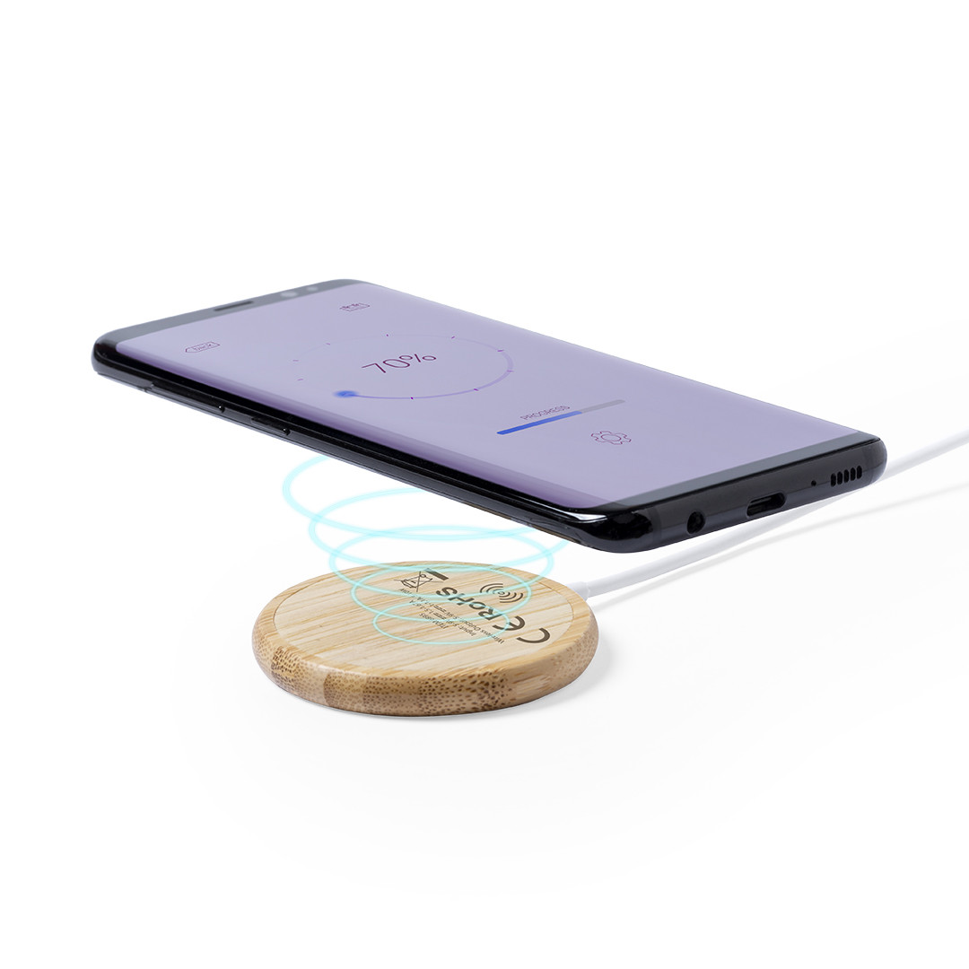 Cargador inalámbrico magnético 10W de línea nature, con carcasa fabricada en resistente bambú. Con indicador de estado de carga y cable USB de 1m. Incluye accesorio metálico con adhesivo 3M, de fijación extra fuerte y libre de residuo al despegarlo del dispositivo, permitiendo así el uso de la función magnética del cargador en cualquier dispositivo móvil. Compatible con terminales equipados con tecnología de carga inalámbrica. Amplia superficie de marcaje y presentado en atractiva caja de diseño eco. Disponible manual de instrucciones en español e inglés. Inalámbrico 10W. Magnético