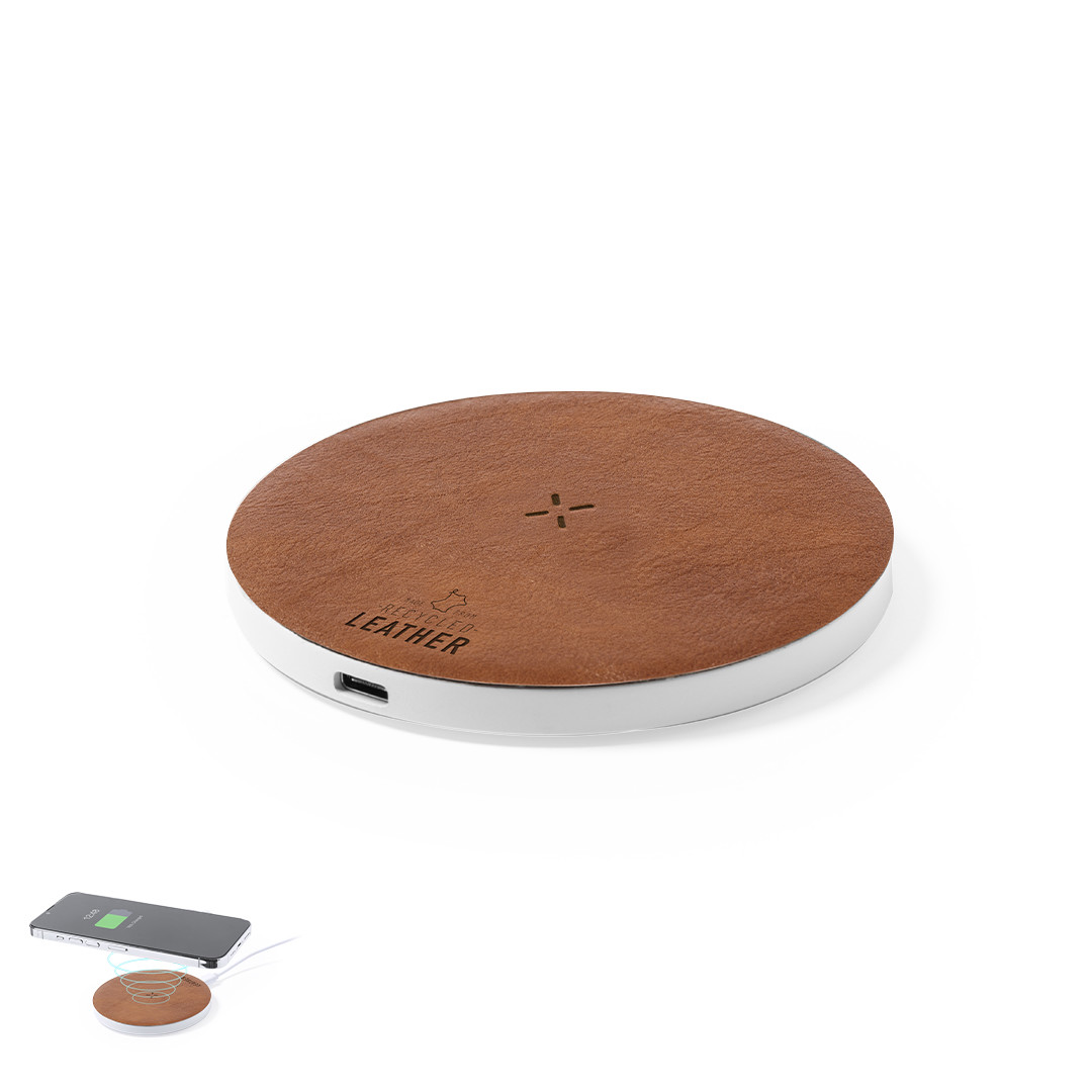 Cargador inalámbrico 15W, fabricado en combinación de RABS y cuero reciclado. Compatible con dispositivos equipados con tecnología de carga inalámbrica Qi. Con base antideslizante, incluye cable cargador Tipo C y manual de instrucciones en español e inglés. Presentado en caja individual de diseño kraft. El material RABS o ABS Reciclado y el cuero reciclado proceden del reciclado de artículos al final de su vida útil. Los materiales reciclados empleados incorporan la certificación RCS que garantiza el origen reciclado de los mismos. Fabricado conforme a los estándares RoHS y en cumplimiento con los siguientes requisitos de seguridad: Sistema de protección contra sobrecalentamiento. Sistema de protección contra sobrecarga. Sistema de bloqueo para evitar cortocircuitos. Inalámbrico 15W