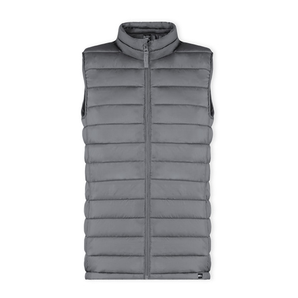 Chaleco unisex en cálido y suave material 100% poliéster RPET, elaborado a partir de plástico reciclado para así fomentar la reutilización de residuos plásticos y contribuir a la sostenibilidad del planeta. En material extra ligero efecto pluma, resistente al agua y cortavientos, con acolchado interior. Cremallera de cuello con tapeta y cinta en tirador amplios bolsillos laterales con cremallera. Distintivo RPET en etiqueta y disponible en variada gama de colores. Tallas S, M, L, XL, XXL. Resistente al Viento y al Agua. Funda Poliéster RPET