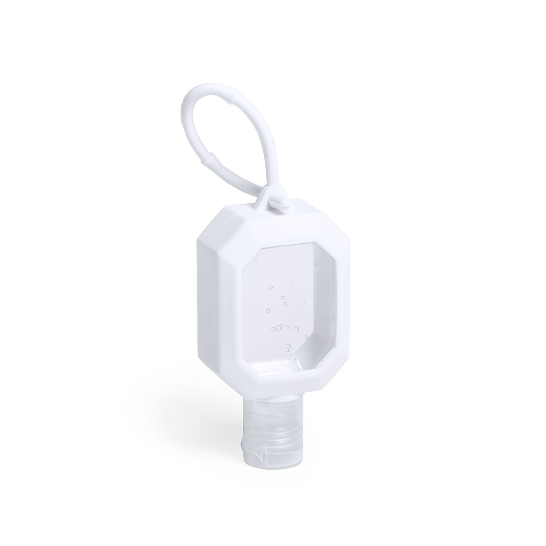 Gel hidroalcohólico para higiene y limpieza de la piel en bote rellenable de 30 ml, con extracto balsámico de Aloe Vera. Cuerpo en suave silicona de color blanco, con dosificador, tapón de seguridad y cordón en mismo material para transporte / fijación. Solución con 65% de contenido de alcohol. Disponible certificación 94/62/EC. Artículo con certificación GMP (Good Manufaturing Practices / Normas de Correcta Fabricación) que garantiza el cumplimiento de rigurosas medidas de control para la obtención de un producto seguro y de calidad. 30 ml. Solución para la limpieza de la piel