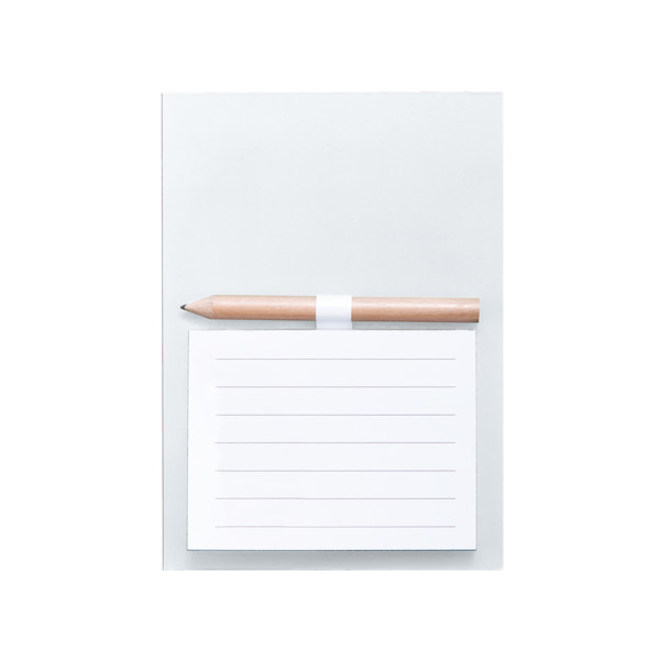 Imán bloc de notas en resistente cartón de vivos y variados colores. Bloc de 40 hojas de distribución a una raya con soporte para minilápiz -incluido-. Bloc 40 Hojas. Lápiz Incluido