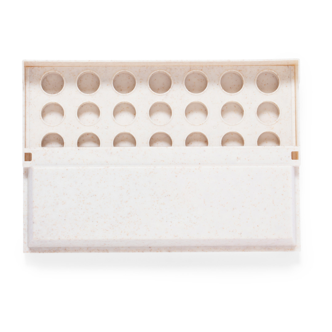 Divertido juego de mesa fabricado en caña de trigo. Compuesto por un tablero vertical y 42 piezas circulares (21 rojas y 21 azules). Emoción para todas las edades introduciendo las fichas por las ranuras para conseguir 4 fichas en 1 misma fila. Fácil de montar por su tablero móvil pudiendo desplegar o plegar. Presentado en caja de diseño kraft. 42 Piezas