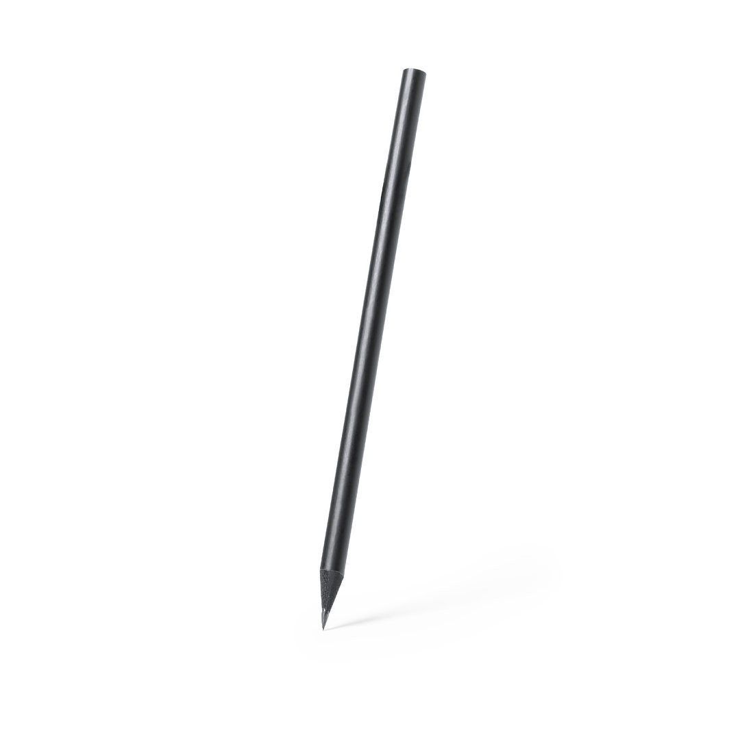 Lápiz de madera natural en acabado negro mate. Con mina negra y punta afilada.