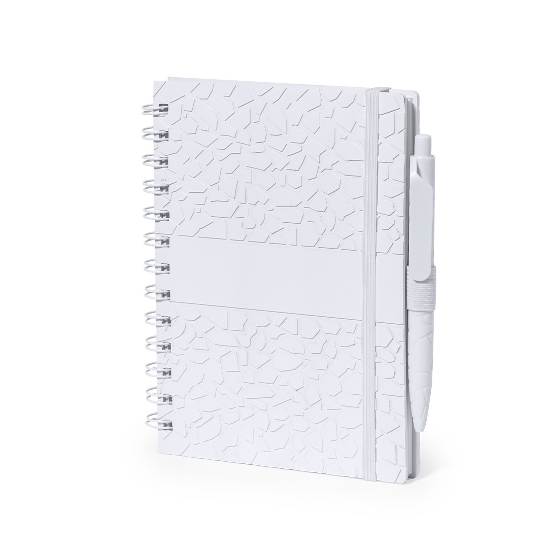 Set de libreta y bolígrafo. Contenido: Libreta de anillas con tapas rígidas fabricada a base de extractos de piedra en elegante acabado de color blanco y soporte para el bolígrafo. Portada de diseño único con relieve troquelado. De 70 hojas color blanco y disposición a una raya, con distintivo Natural Stone.Bolígrafo de línea nature y mecanismo pulsador. Cuerpo troquelado fabricado con extractos de piedra natural, ayudando a la reducción del uso de plásticos, además de proporcionar un acabado suave y resistente. En color blanco y con distintivo Natural Stone en la parte superior. De cartucho jumbo y en tinta azul.El material usado en la elaboración de la libreta es 100% reciclable y libre de cloro, con propiedades impermeables, altamente resistente y lavable, convirtiéndose así en una alternativa ecológica y sostenible frente al papel convencional, cuyo origen no es el tradicional ni proviene de los árboles.Presentado en bolsa individual reciclada. Portada Rígida. 70 Hojas. Bolígrafo E