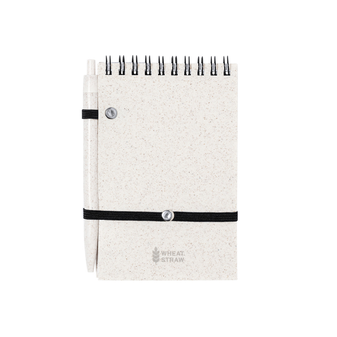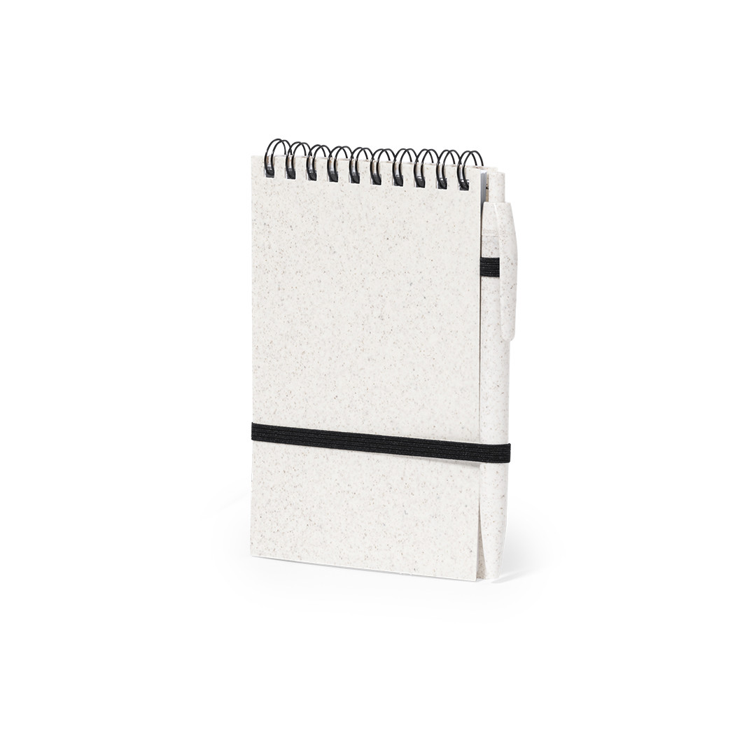 Bolígrafo de mecanismo pulsador en original combinación de cuerpo en cartón reciclado de color natural y accesorios en vivos colores. Tinta azul.