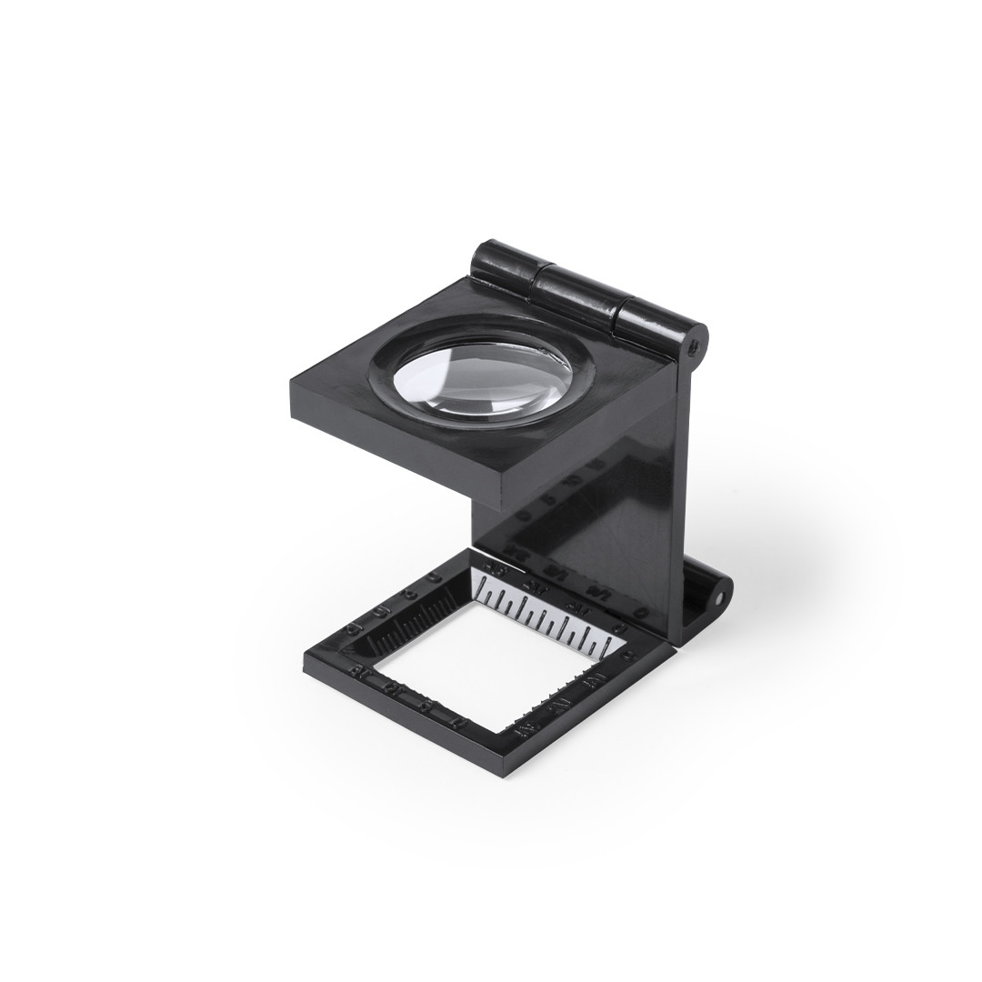 Lupa plegable cuentahilos de 7 aumentos. Con regla de medición integrada en cuerpo y presentada en caja individual. Con Regla para Medición
