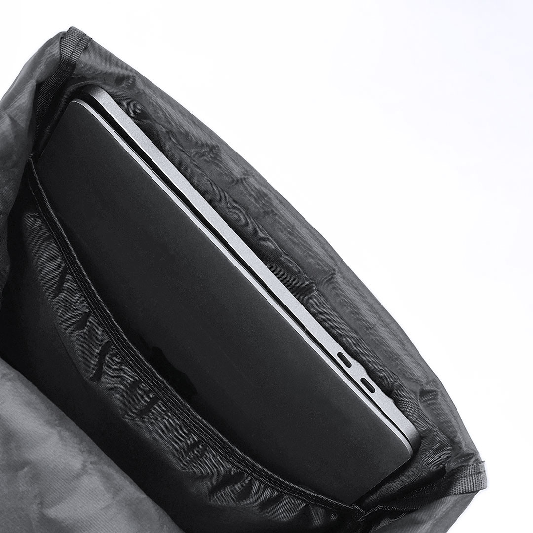 Mochila de resistente nylon 900D de sobrio diseño con cierre de cremallera, bolsillo frontal y asa reforzada. Con acolchado en espalda y cintas de hombros, incluye compartimento interior acolchado para ordenador portátil de hasta 14 pulgadas. Bolsillo Acolchado para Portátil. Parte Trasera y Cintas Acolchadas
