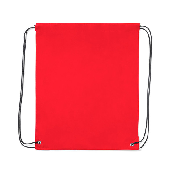 Mochila de cuerdas fabricada en suave poliéster 210D. Con bolsillo frontal de cremallera y salida de auriculares. Cuerdas de autocirre en color gris, a juego con cremallera y esquinas con argollas metálicas y refuerzo de polipiel. En variada gama de colores.