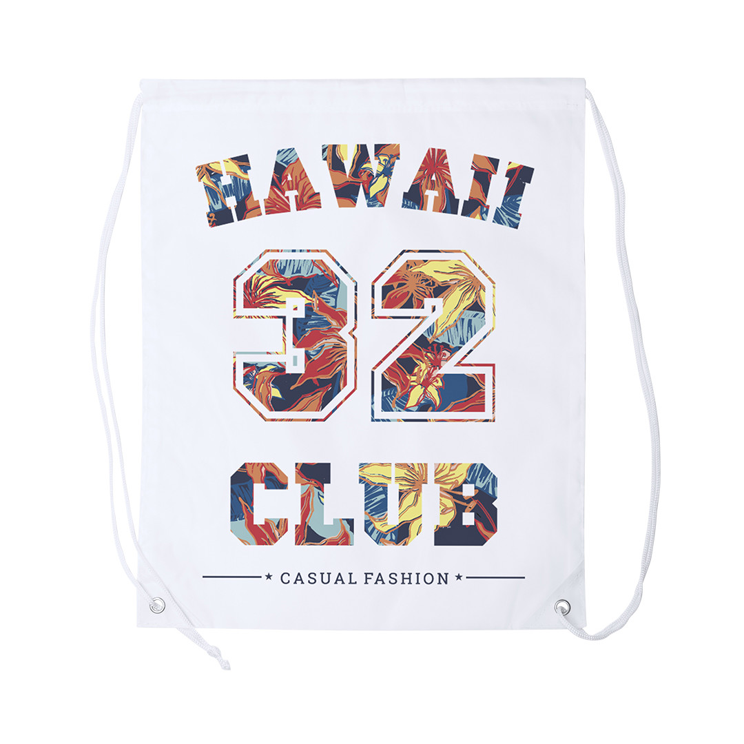 Mochila de cuerdas fabricada en suave poliéster 210D. Con bolsillo frontal de cremallera y salida de auriculares. Cuerdas de autocirre en color gris, a juego con cremallera y esquinas con argollas metálicas y refuerzo de polipiel. En variada gama de colores.