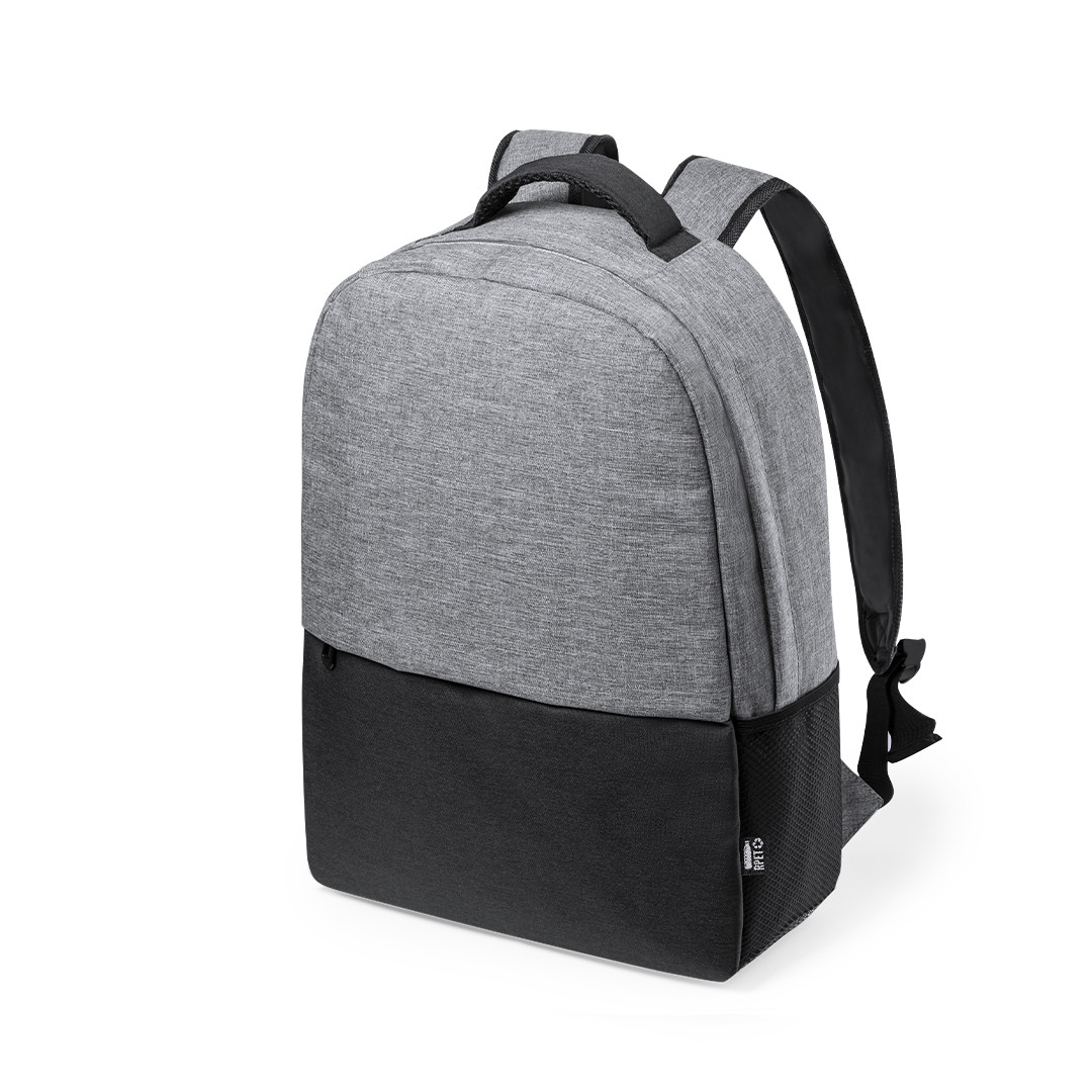 Mochila en resistente poliéster 600D RPET, elaborado a partir de plástico reciclado para así fomentar la reutilización de residuos plásticos y contribuir a la sostenibilidad del planeta. En elegante acabado bicolor, incluye etiqueta exterior con distintivo RPET. Bolsillo principal con compartimentos acolchados para ordenador portátil de hasta 15 pulgadas y tablet de hasta 10 pulgadas. Espalda y cintas acolchadas. Acolchada. Bolsillo Acolchado para Portátil y Tablet