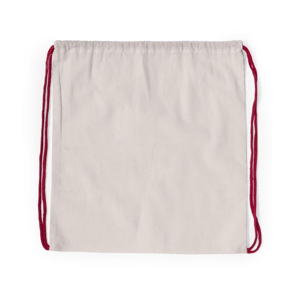 Mochila de cuerdas fabricada en suave poliéster 210D. Con bolsillo frontal de cremallera y salida de auriculares. Cuerdas de autocirre en color gris, a juego con cremallera y esquinas con argollas metálicas y refuerzo de polipiel. En variada gama de colores.
