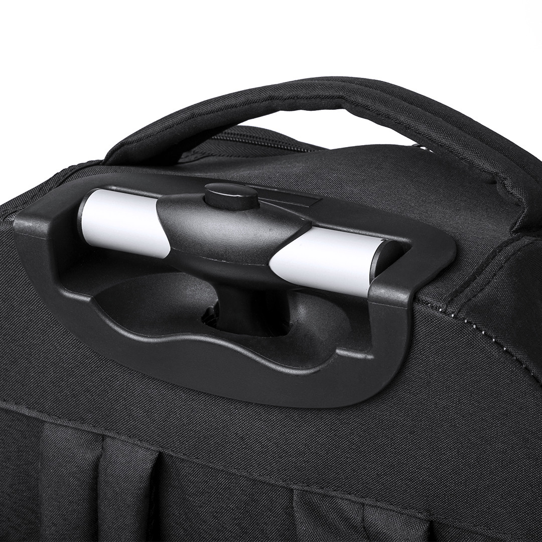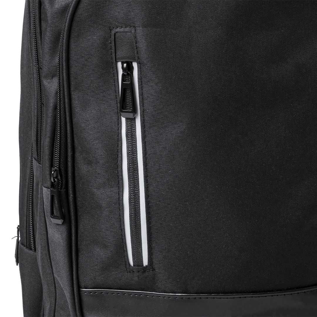 Mochila de resistente nylon 900D de sobrio diseño con cierre de cremallera, bolsillo frontal y asa reforzada. Con acolchado en espalda y cintas de hombros, incluye compartimento interior acolchado para ordenador portátil de hasta 14 pulgadas. Bolsillo Acolchado para Portátil. Parte Trasera y Cintas Acolchadas
