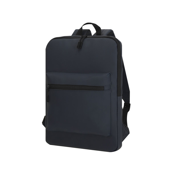 Mochila de resistente nylon 900D de sobrio diseño con cierre de cremallera, bolsillo frontal y asa reforzada. Con acolchado en espalda y cintas de hombros, incluye compartimento interior acolchado para ordenador portátil de hasta 14 pulgadas. Bolsillo Acolchado para Portátil. Parte Trasera y Cintas Acolchadas