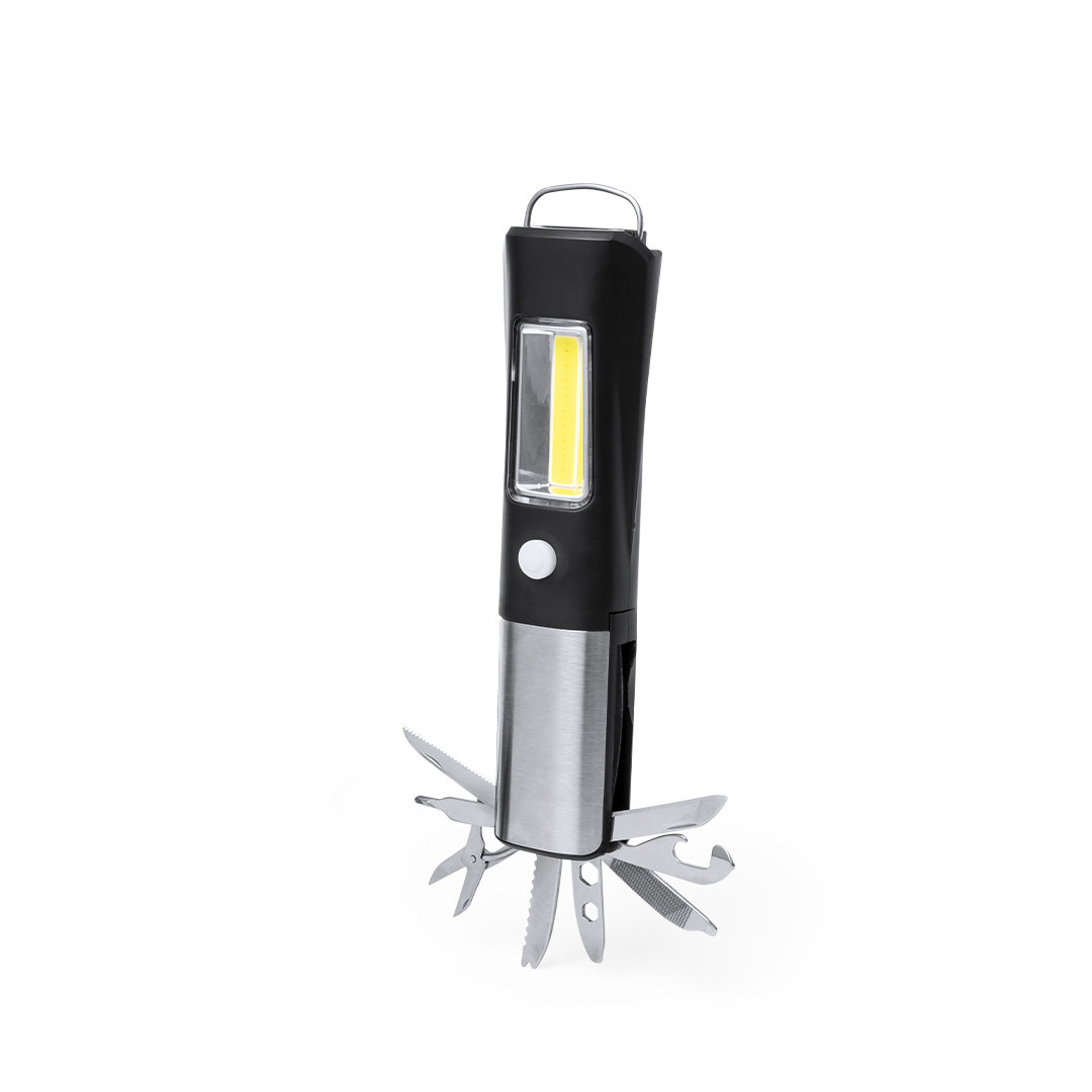 Set de aluminio de navaja multiusos con 7 funciones y linterna mosquetón. En variados colores y presentado en estuche individual con ventana y suave espuma interior troquelada. Pilas de botón incluidas. Linterna 1 Led. Navaja 7 Funciones. Pilas Botón Incluidas