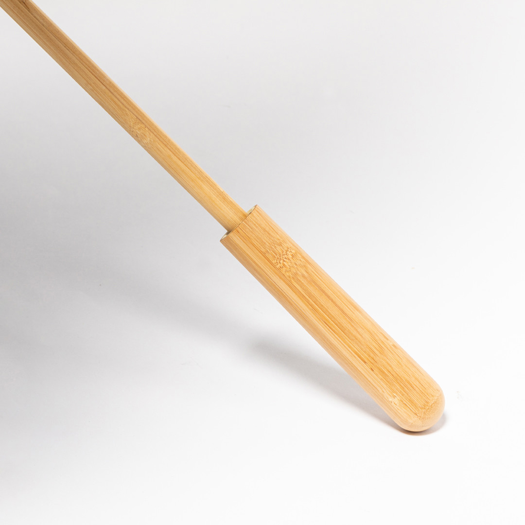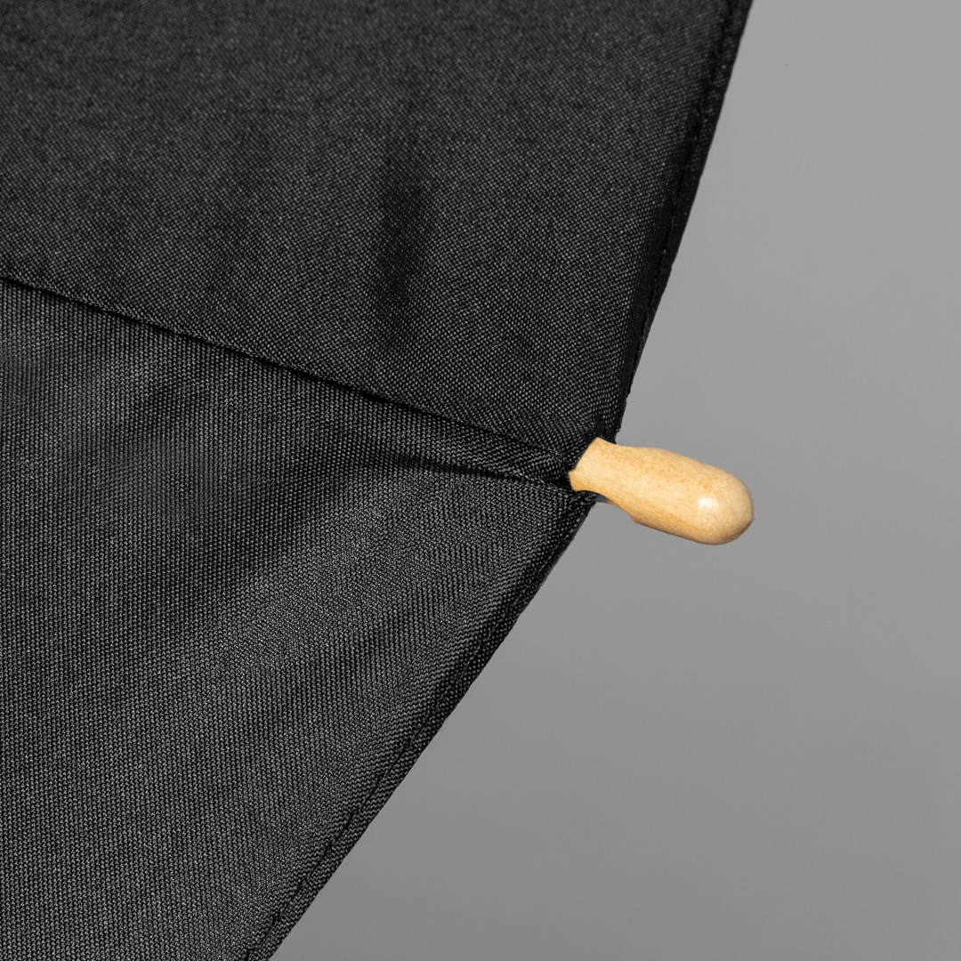Paraguas de 140cm de diámetro en material pongee 190T RPET. Apertura manual y varillas de fibra de vidrio antiviento, de elegante color negro con cierre de velcro. Mango recto hecho en bambú y etiqueta distintiva RPET.El material RPET se elabora a partir de plástico reciclado, para así fomentar la reutilización de residuos plásticos y ayudar a la sostenibilidad del planeta. 23". Sistema Antiviento. Mango y Caña Bambú
