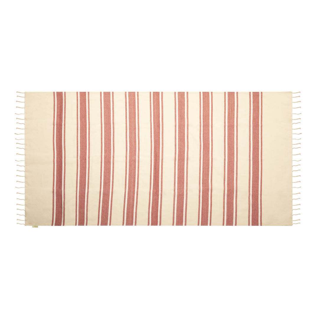 Pareo toalla 2 en 1 en algodón orgánico de 110g/m2. Tamaño 180 x 90 cm y disponible en variada gama de colores combinados. Distintivo organic en etiqueta.