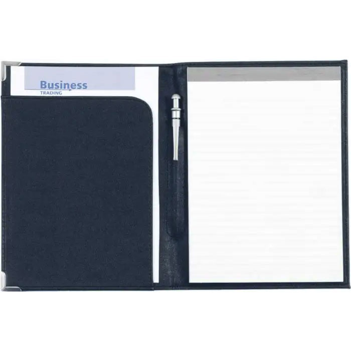 Esta carpeta A5, se utiliza para guardar documentos, tiene block de notas, con portabolígrafo y elegantes cantoneras de protección, bolígrafo no incluido. Se puede personalizar en serígrafia , golpe en seco, etc