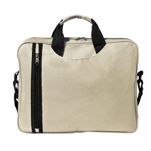 Portadocumentos con solapa de cierre de velcro en resistente non-woven con elegante ribete en color negro. Con compartimentos interiores para bolígrafos.