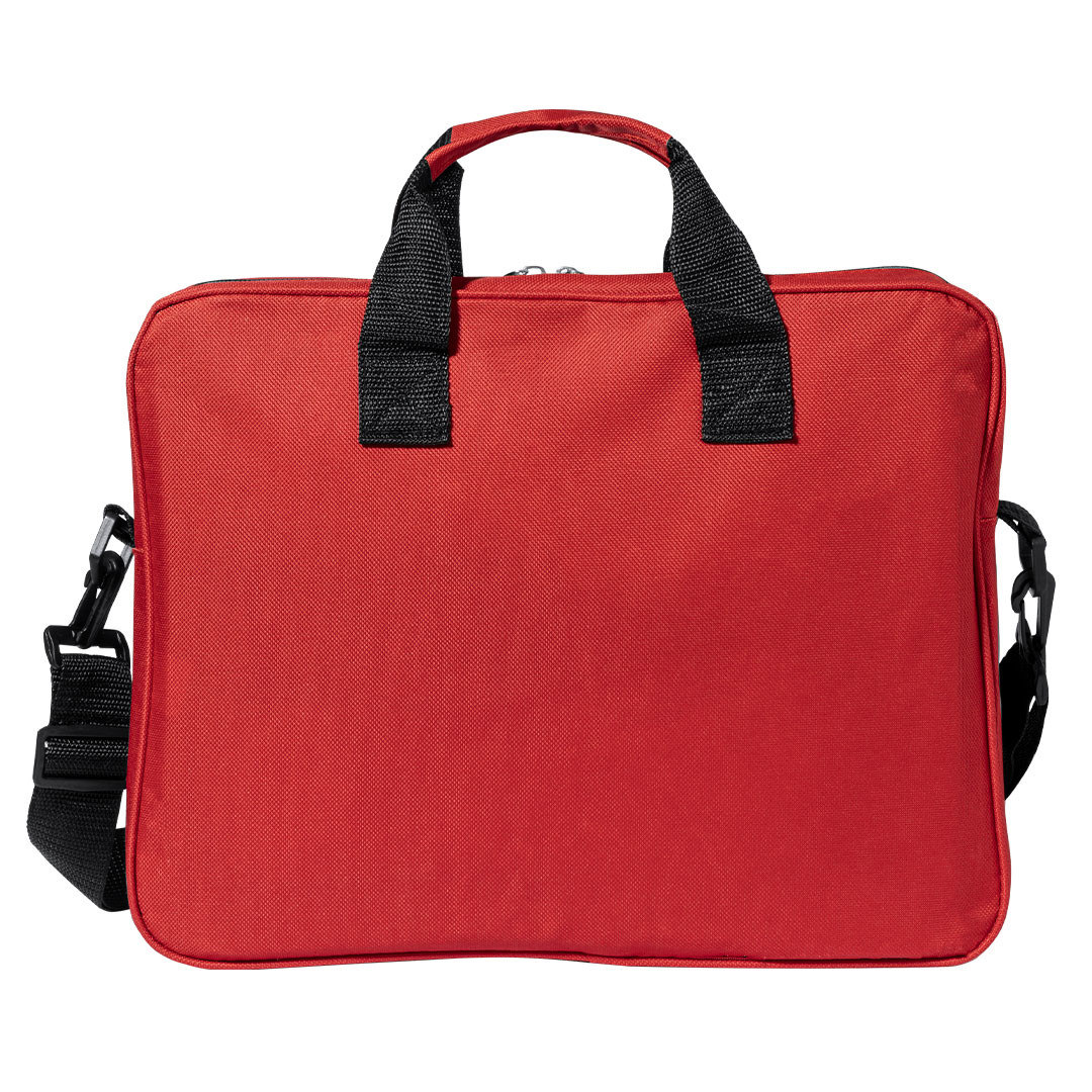 Portadocumentos con solapa de cierre de velcro en resistente non-woven con elegante ribete en color negro. Con compartimentos interiores para bolígrafos.