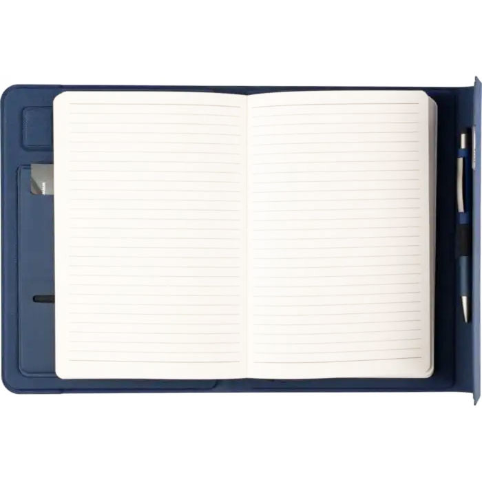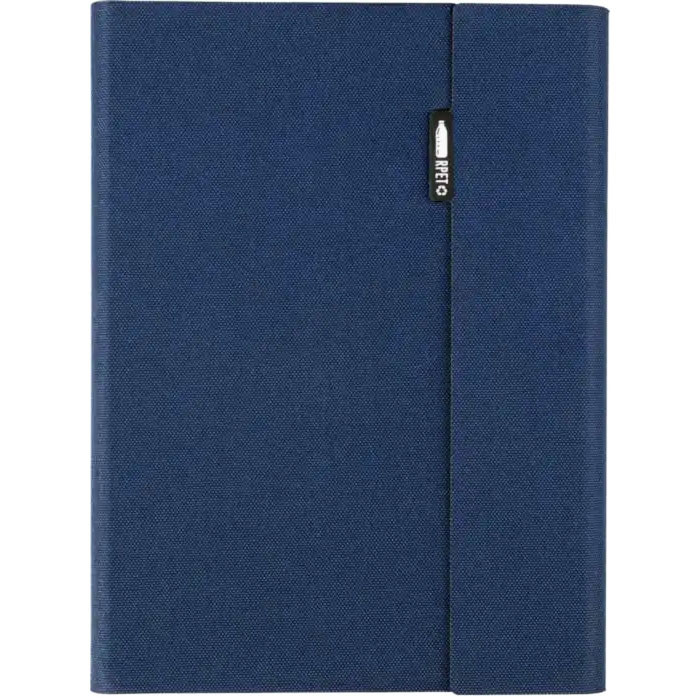 Carpeta de congresos de rPet. Muy práctica. Incluye un cuaderno con hojas rayadas, múltiples compartimentos, soporte para teléfono y cierre magnético. Dos colores disponible.