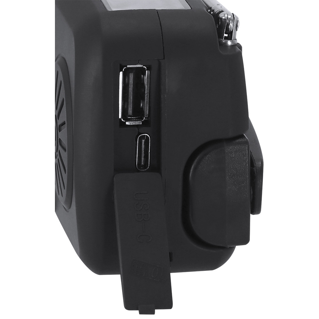 Radio Multifunción de Emergencia fabricada en resistente ABS. Ofrece una amplia gama de funciones útiles para el uso diario, actividades al aire libre o situaciones de emergencia. Incluye: - Radio de banda dual: FM / AM - Linterna LED, con modo SOS - Panel de Carga Solar - Carga Manual con sistema dinamo ajustable de 360° - Batería recargable de 2000 mAh - Antena plegable de alta sensibilidad - Entrada Tipo C y salida USB Una solución funcional para mantenerse siempre conectado y preparado. 1 Led. 2 Posiciones de Luz, Fija e Intermitente. 2000 mAh. Radio AM/FM. Carga Solar y Manual