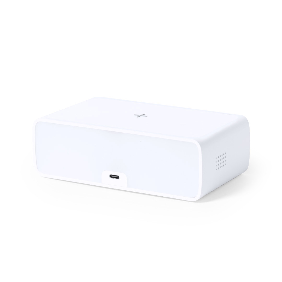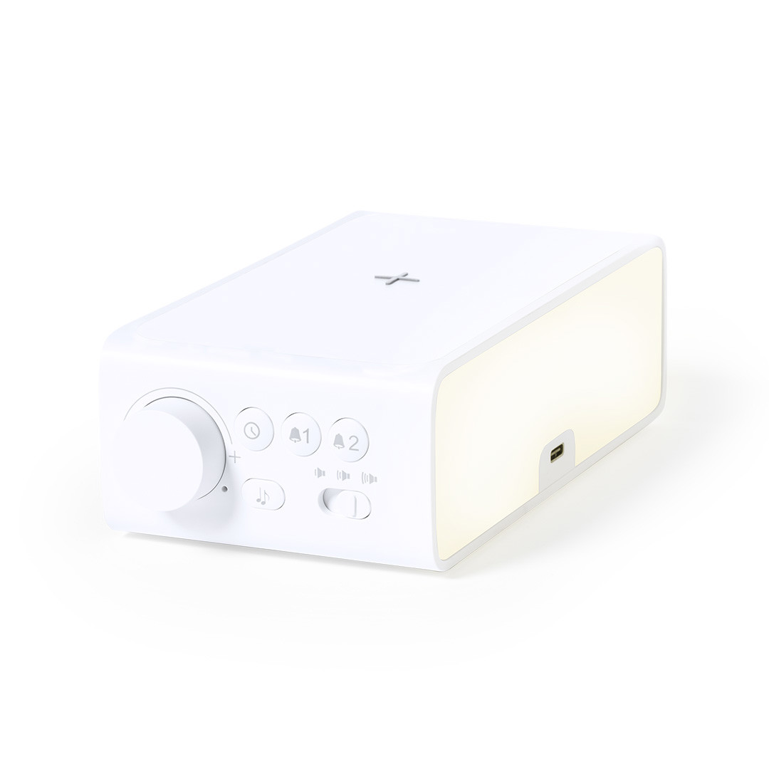 Reloj multifunción con pantalla retroiluminada y cargador inalámbrico 10W integrado. De elegante diseño en color blanco, con funciones hora y alarma. Cable de carga Tipo C de 1 m incluido y compatible con dispositivos equipados con tecnología de carga inalámbrica Qi. Presentado en caja individual de diseño kraft, con manual de instrucciones en español en inglés.Fabricado conforme a los estándares RoHS y en cumplimiento con los siguientes requisitos de seguridad:Sistema de protección contra sobrecalentamiento.Sistema de protección contra sobrecarga.Sistema de bloqueo para evitar cortocircuitos. Inalámbrico 10W. Conexión USB