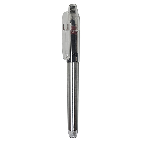 Bolígrafo antibacteriano con pulverizador recargable integrado y capucha protectora, incluye puntero en color gris. Acabado liso en resistente ABS brillante con elegante clip metálico y escritura en tinta azul. Capacidad del pulverizador 3ml. Líquido no incluido.Los productos con tratamientos antibacterianos son capaces de reducir drásticamente las cargas bacterianas presentes en las superficies de los materiales, gracias a la incorporación de agentes microbianos permanentes estáticos, con alta efectividad para inhibir y prevenir la contaminación bacteriana.Artículo de acuerdo al estándar ISO 22196, que determina la actividad antibacteriana en materiales plásticos y superficies no porosas, lo que permite conocer la efectividad de inhibición microbiana que tienen los aditivos sobre los objetos tratados mediante una evaluación cuantitativa. 3 ml. Líquido No Incluido