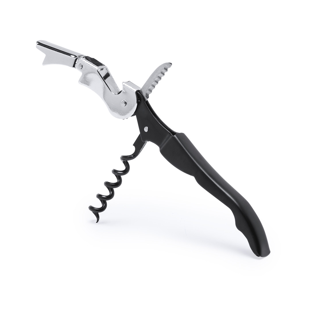 Divertido sacacorchos magnético con forma de botella de vino en diseños blanco, tinto y rosado. Con cuerpo en original acabado translúcido y función abridor. Magnético