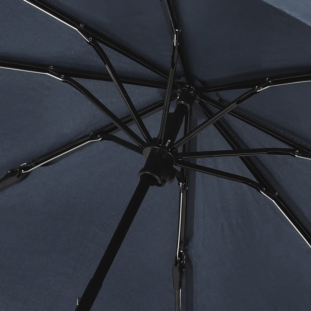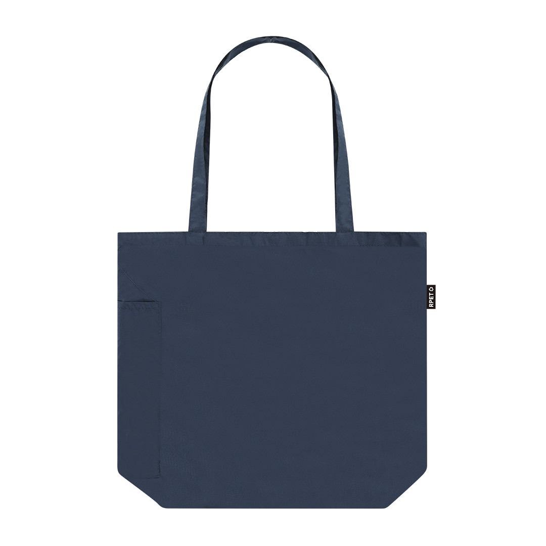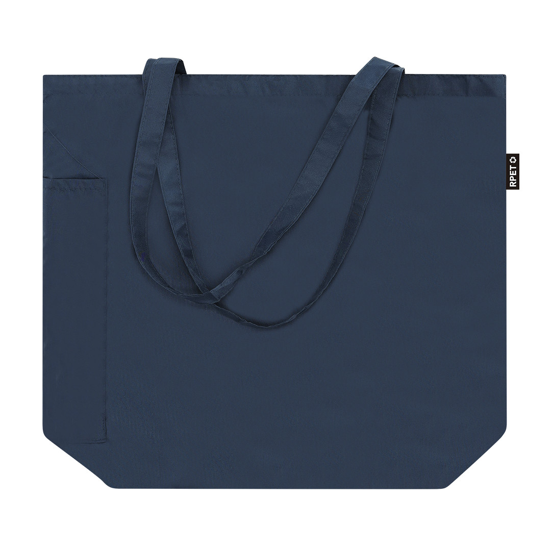 Set de paraguas y bolsa fabricado en RPET. Paraguas con practica bolsa con funcionalidad 2-1.Paraguas plegable con 100cm de diámetro. En material pongee 190T RPET y mango de suave ABS negro con cinta de muñeca para mayor seguridad. De apertura manual, con sistema antiviento y varillas en fibra de vidrio en color negro. Con etiqueta distintiva RPET.Bolsa fabricada en RPET Pongee 190T, con bolsillo en el lateral. Resistente a la lluvia. Con cremallera metalizada para guardar el paraguas y mantener seco el contenido de la bolsa. Ofrece una solución práctica y versátil para los días de lluvia, cuando no se está utilizando se enrolla actuando como funda para el paraguas. Con etiqueta distintiva RPET. 21". Sistema Antiviento