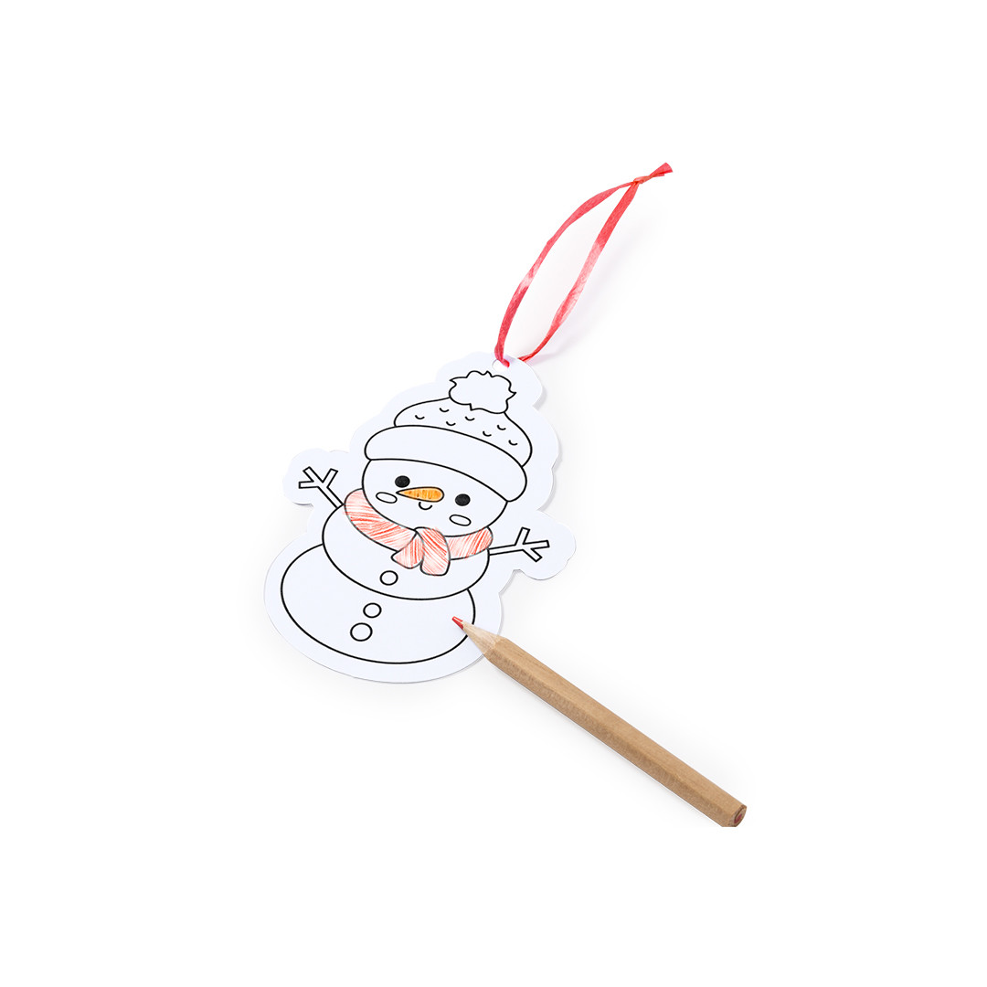 Set de adornos con 6 originales diseños navideños para colorear y decorar el árbol de navidad. Incluye 6 lápices de madera en diferentes colores. Fabricados en cartón y presentados en una bolsa reciclada. 6 Lápices y 6 Adornos Incluidos