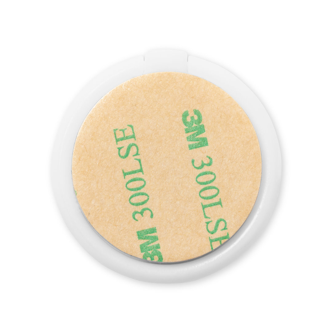 Soporte multifunción para smartphone, con moneda para carro de la compra integrada y anilla/soporte plegable. Cuerpo fabricado en resistente ABS de acabado blanco, con moneda en bambú. Con adhesivo de fijación extra fuerte y libre de residuos al despegarlo del dispositivo. Adhesivo. 3 Funciones