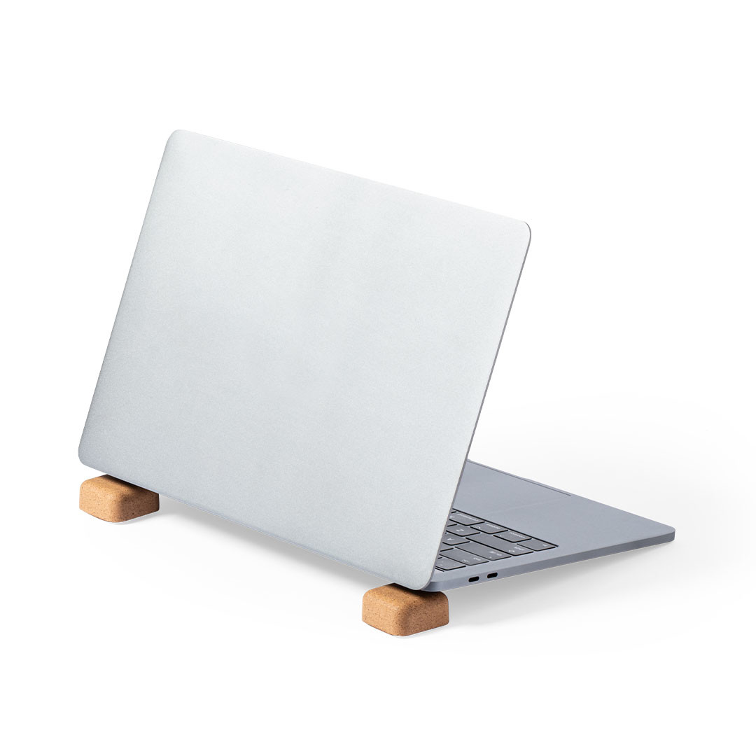 Compacto soporte de línea nature para ordenador portátil. Fabricado en corcho, para así fomentar la utilización de materias primas naturales y reducir las emisiones de contaminantes. Magnético y antideslizante, presentado en atractiva caja individual de diseño eco. Magnético
