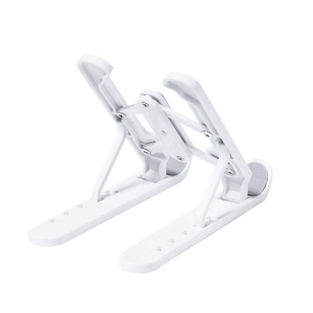 Soporte plegable para tablet. Fabricado en resistente ABS con protecciones antideslizantes para un firme ajuste al dispositivo en color gris. Regulable en altura de 5 posiciones y plegado de tamaño compacto. Plegable. Altura Regulable
