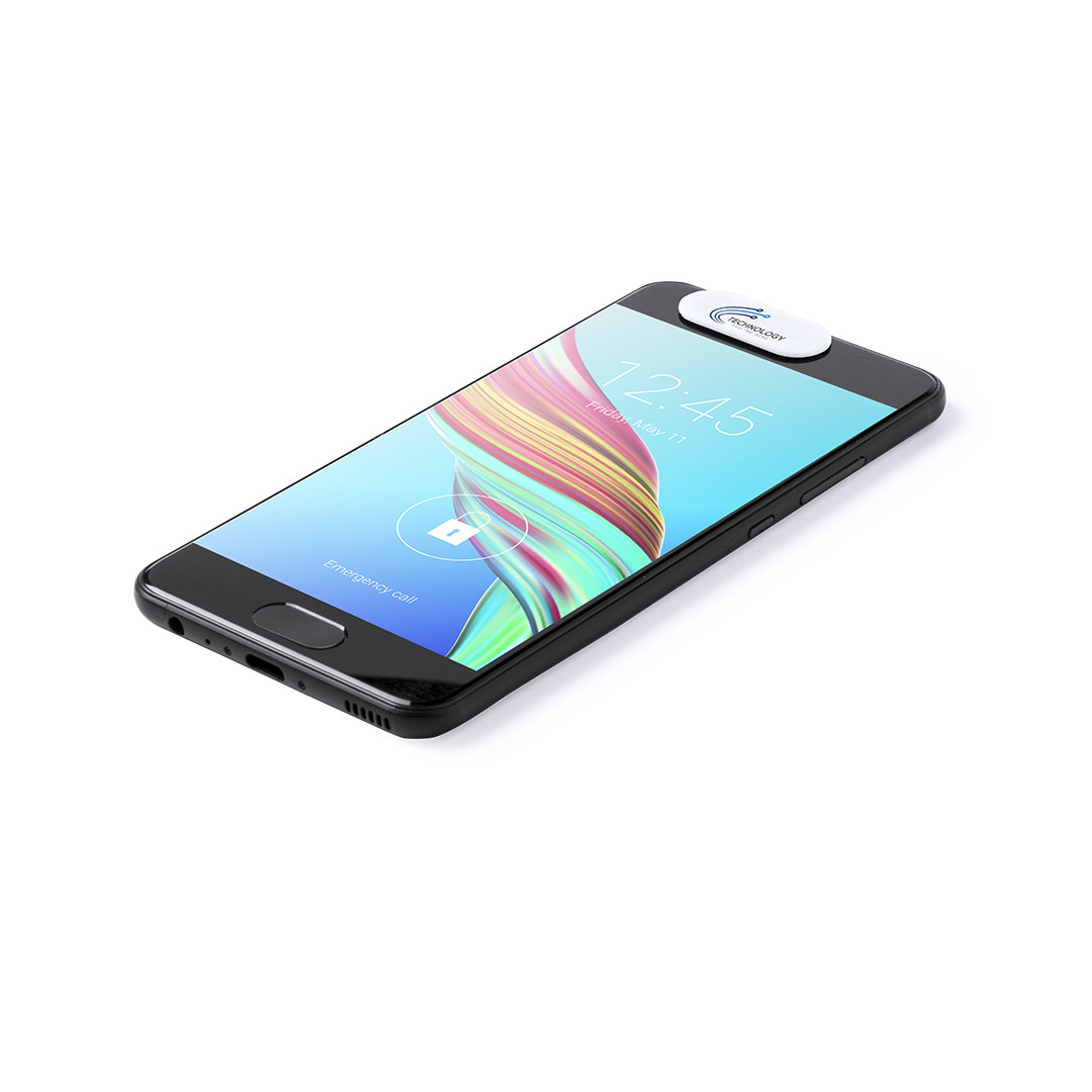 Limpiador de pantalla de suave microfibra de diseño minimalista, en desenfadados colores y con parte trasera adherente. Adherente