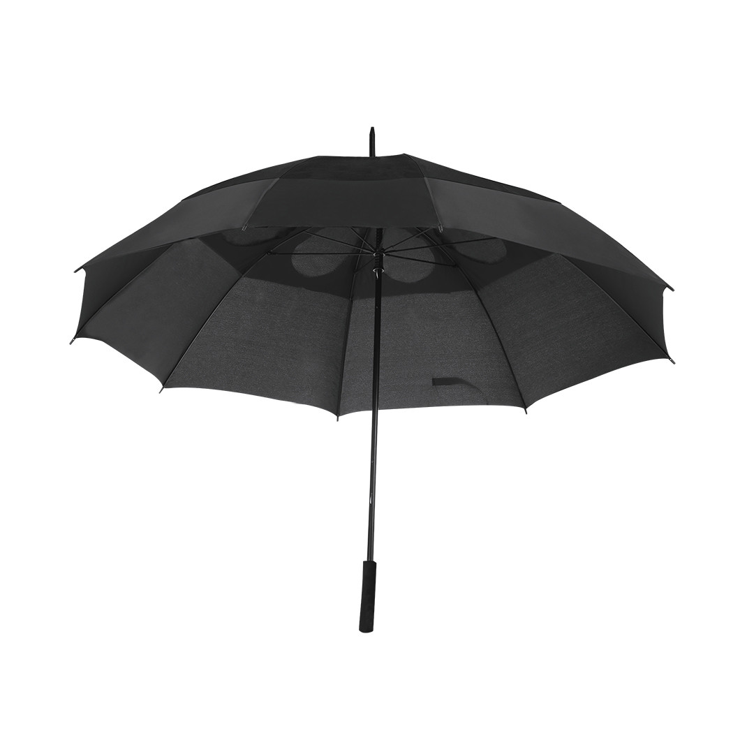 Paraguas plegable de alta calidad de 8 paneles en sobrios colores. De 98cm de diámetro, con apertura automática y en resistente material pongee. Con varillas metálicas en color negro, cierre de velcro y mango ergonómico de EVA con cinta de transporte. Presentado en funda individual a juego con cinta de transporte y cierre con accesorio de ajuste. 21". Automático. Mango Ergonómico EVA. Funda Pongee