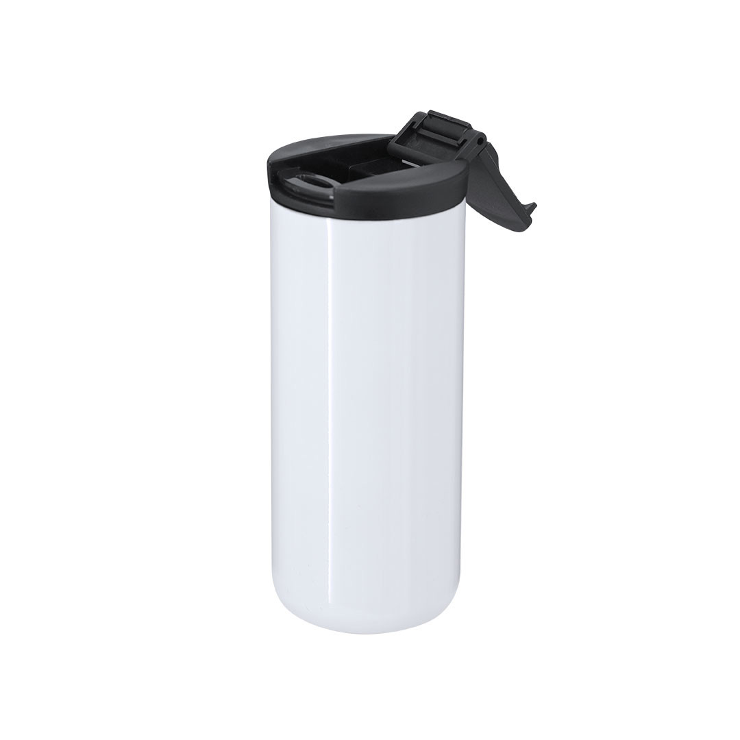 Vaso térmico fabricado en acero inox de doble pared y 370ml de capacidad. Especialmente diseñado para marcaje en sublimación, acabado en blanco brillo. Equipado con un dosificador en la tapa de color negro, diseñado para evitar fugas y libre de BPA. 370 ml
